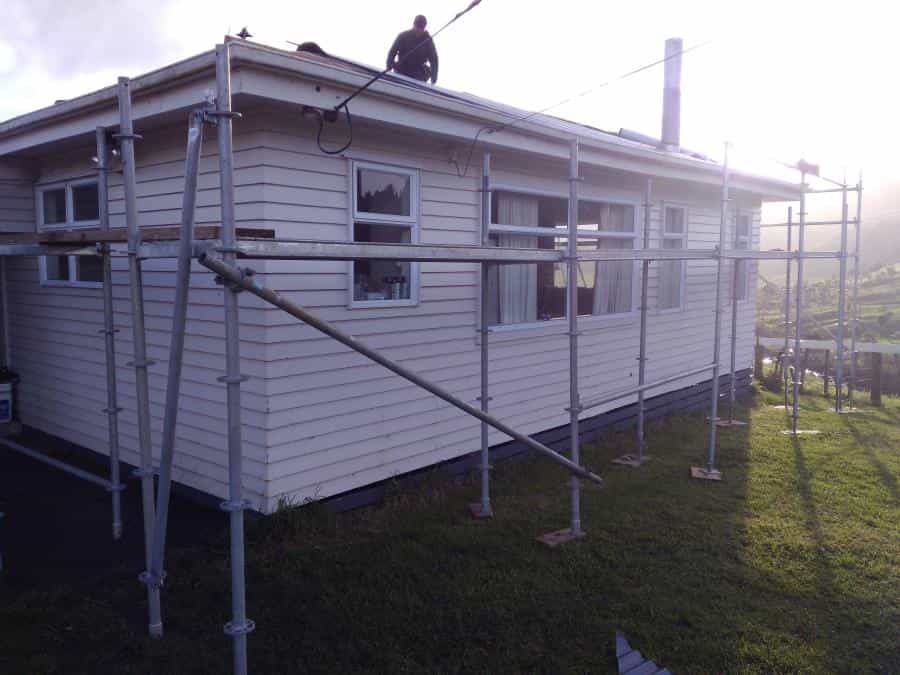 Scaffolding erected at farm cottage 755 Pukerewa Rd...